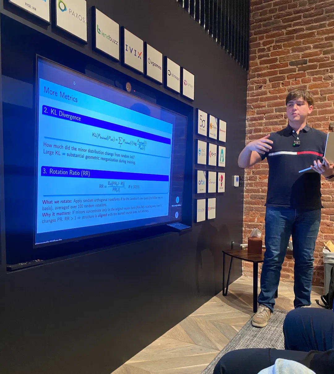 Mathew Vanherreweghe (from Logical Intelligence) walked through breakthroughs in detecting potential model hallucinations through neural network geometric structure, and how to point models away from those paths, before they ever reach users. The room lit up when he showed huge benefits not only in accuracy, but also in data and compute costs!